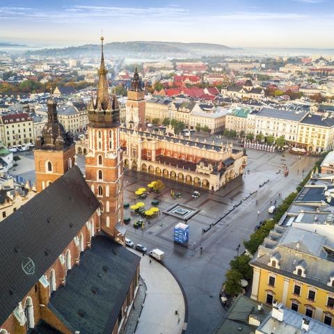 Centrum Krakowa dominuje Rynek Główny, jeden z największych średniowiecznych rynków w Europie, otoczony zabytkowymi kamienicami, kościołami i kawiarniami, w sercu którego stoi Sukiennice – renesansowa hala targowa. Nieopodal, wznosi się Wawel, majestatyczny zamek królewski i katedra, miejsce pochówku polskich monarchów i narodowych bohaterów, będące symbolem polskiej historii i kultury.